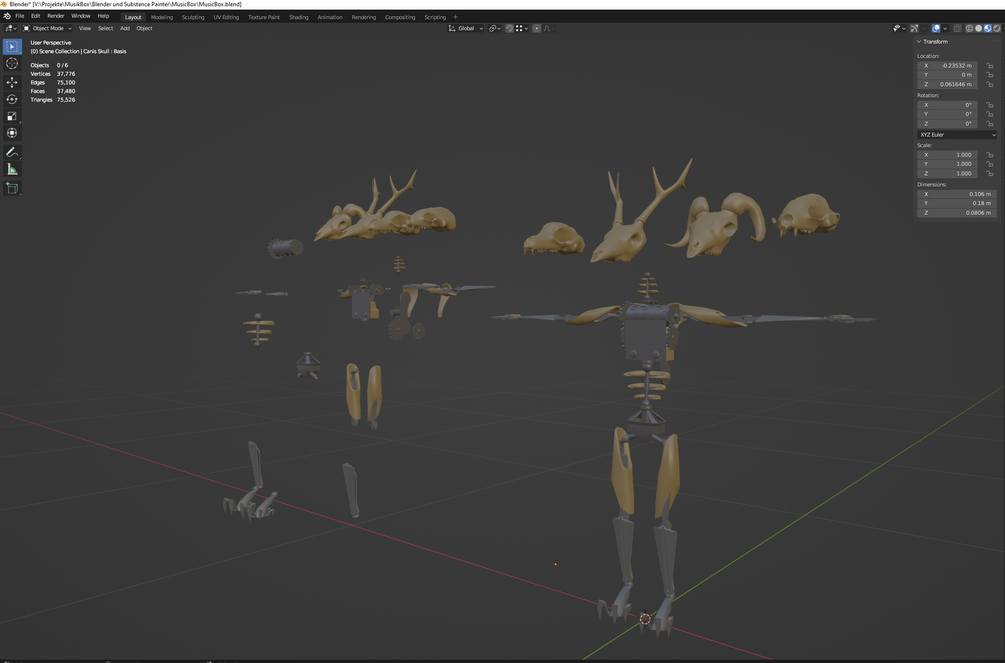 MusicBox Avatar for VrChat - Including 4 different heads and serveral textures. Blender, SubstancePainter and Unity Files Included